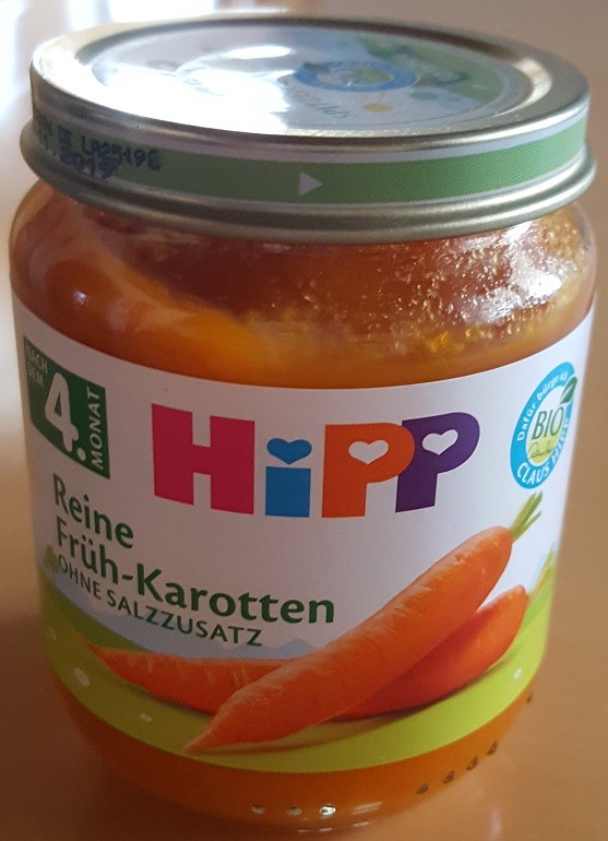 最初はにんじんのみ、Pastinak(日本語不明。英語だとParsnipっていうらしい)っていうお野菜のみ、カボチャのみとかか始まり、そこからにんじん+じゃがいもとか色んなお野菜が入ったやつも試して、お米+にんじん+鶏肉とかお肉が入ったベビーフードも食べさせてます。