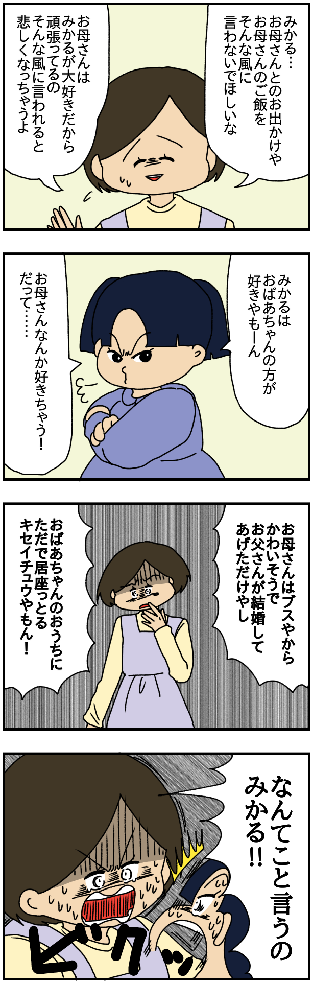 この2人の悪影響によりみかるちゃんまでお母さんのことを侮辱してきます