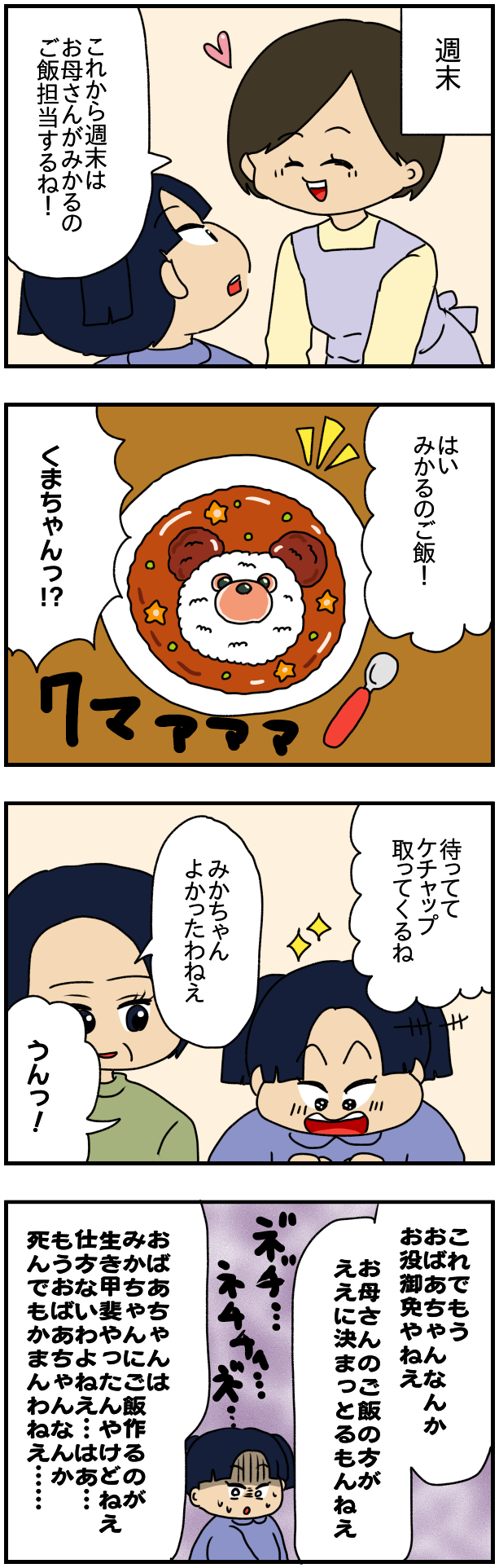 👇以前も書いた通りみかるちゃんのおばあちゃんの食事メニューは不健康なものばかりでかつ味覚がいかれてます