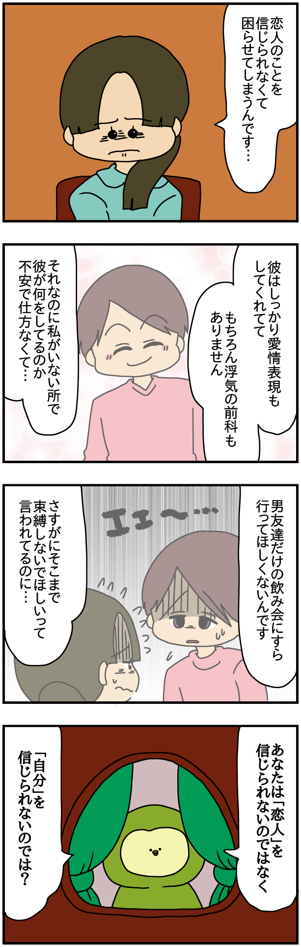 これはポが言っている通り「相手を信じられない」のではなく「自分を信じられない」の典型例です
