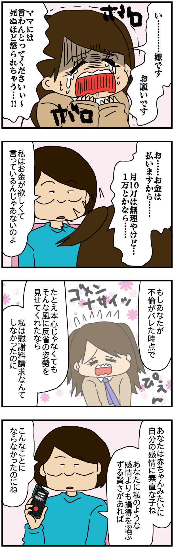 👇たしかに椎音さんは胡桃ちゃんに連絡する前「不倫がバレた今の時点で反省を見せれば慰謝料請求はせずに許す」と言っていました