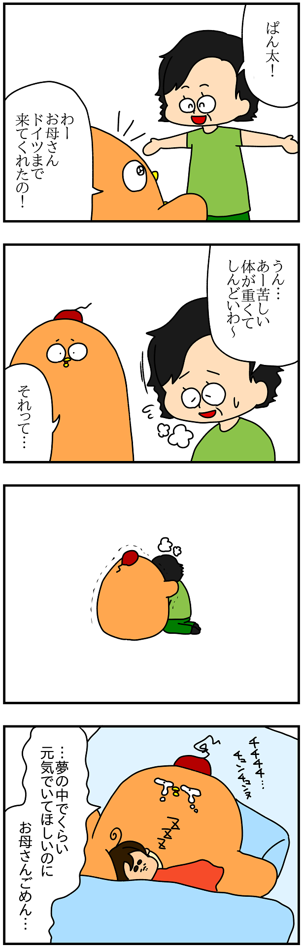 でも一回だけお母さんが元気な夢見たから、また今度描く。