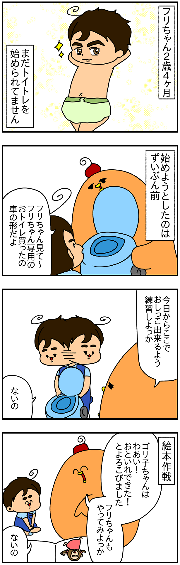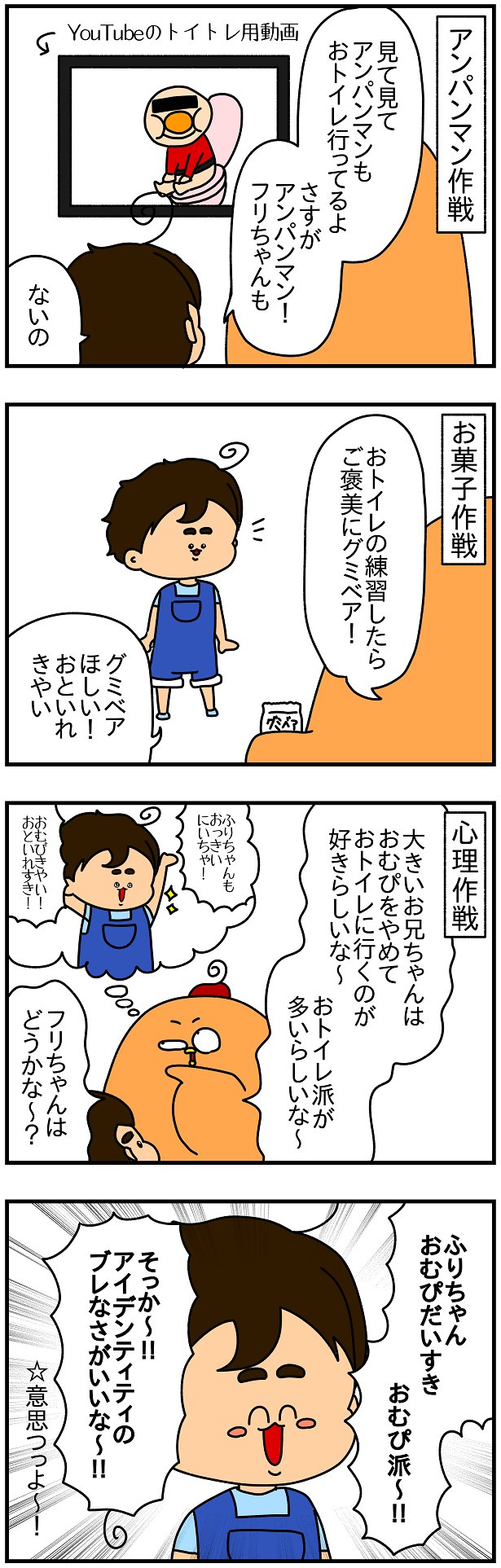 その上で「ふりちゃんおといれしない。おむぴおしっこする」と超頑な。