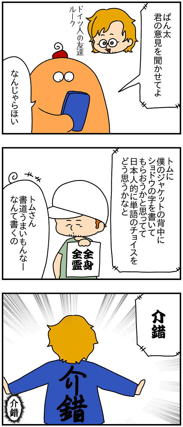 2020年08月28日 1283おまけ.「介錯」 こんばんは!!ルークとトムさんまたまた登場。また遊びたいなぁ。介錯…か…。ちなみに結局「介錯」はやめたらしい。たしかに全日本人が二度見すると思う。👇大人気!きよかちゃんシリーズの過去作品はここに全部まとめてあるよ💕👇たくさんのひとがブログを読んでくれることになったきっかけ!国際離婚・親権裁判の経緯はここにまとめてあるよ!👇チコちゃんシリーズ書籍化!!発売開始しました💖💖欲しがるあの子を止められない とんでもないクレクレちゃんに絡まれた結果、 人生を深く考えた話ぱん田ぱん太KADOKAWA2023-07-05👇ぱんちゃんブログ記事の更新通知を受け取りたいひとはこの中のどれかから💝👇SNS色々やってます!ぜひぜひフォローしてね~💝👇人気ブログランキングの応援してくれたら嬉しいなぁ💕(クリックは一日一回有効らしいです!)絵日記ランキング👇コメント欄は承認制です!詳しくはこちら 「友達」カテゴリの最新記事 タグ :#語学#カルチャーショック < 前の記事次の記事 >