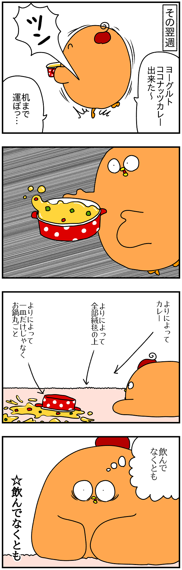 最大の幸いは、このあっつあつの出来たてカレーがふりぽよにかからなかったこと(ふりぽよはキッチンにいた)。