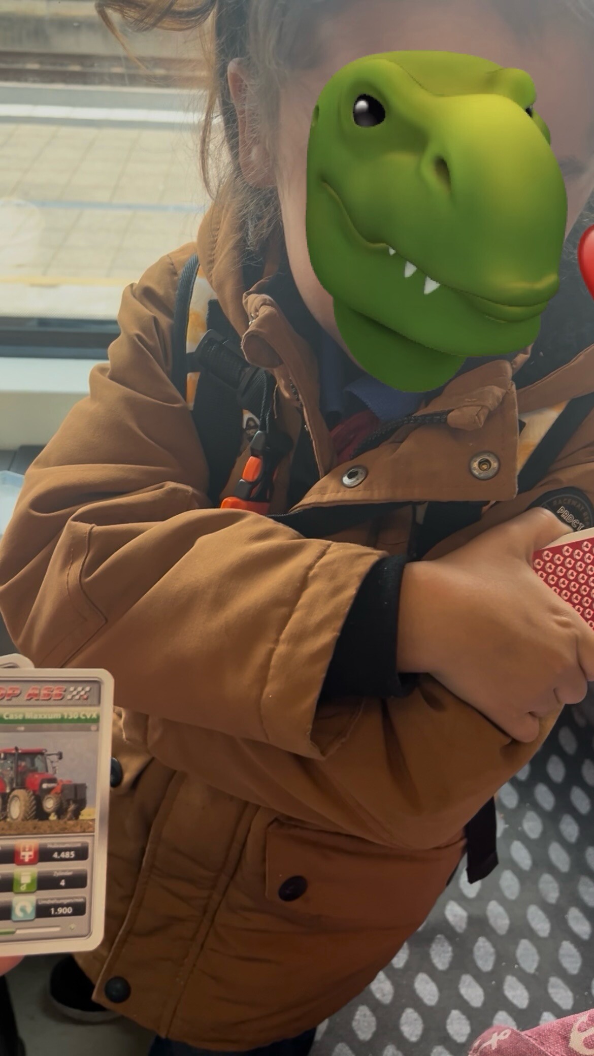 私とふりぽよが持ってるのは「トラクター」と「恐竜」です