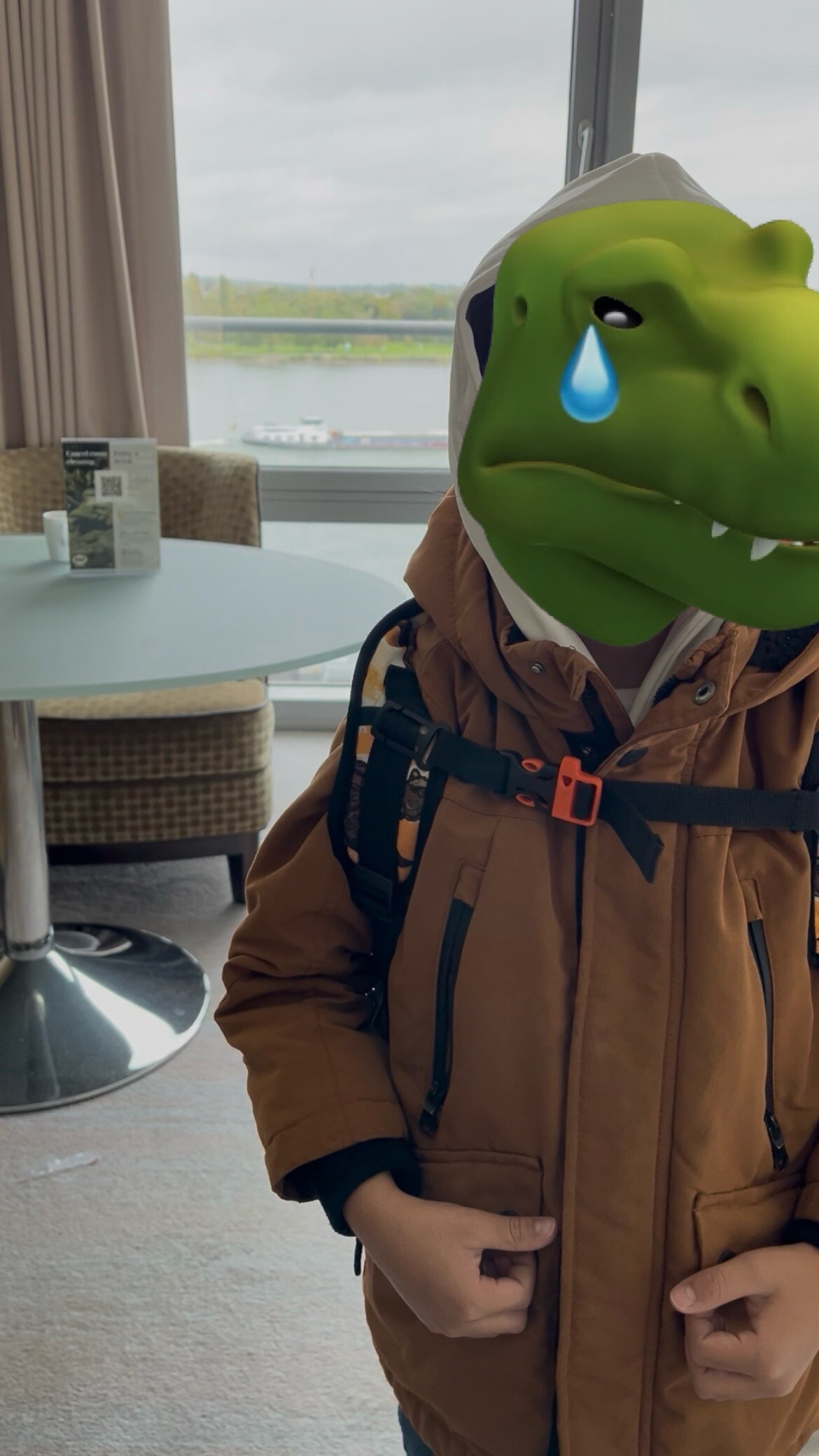 チェックアウト時間になって不満そうなぽよ