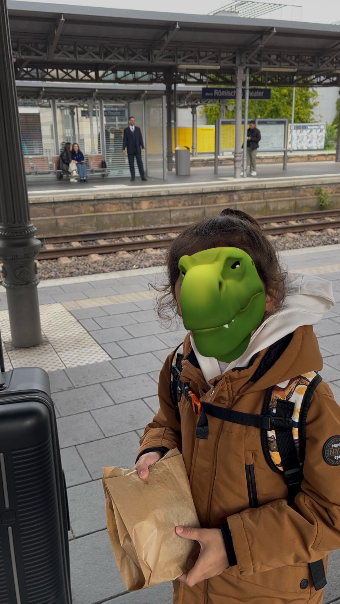 駅まで来ました。駅のカフェで食料を調達