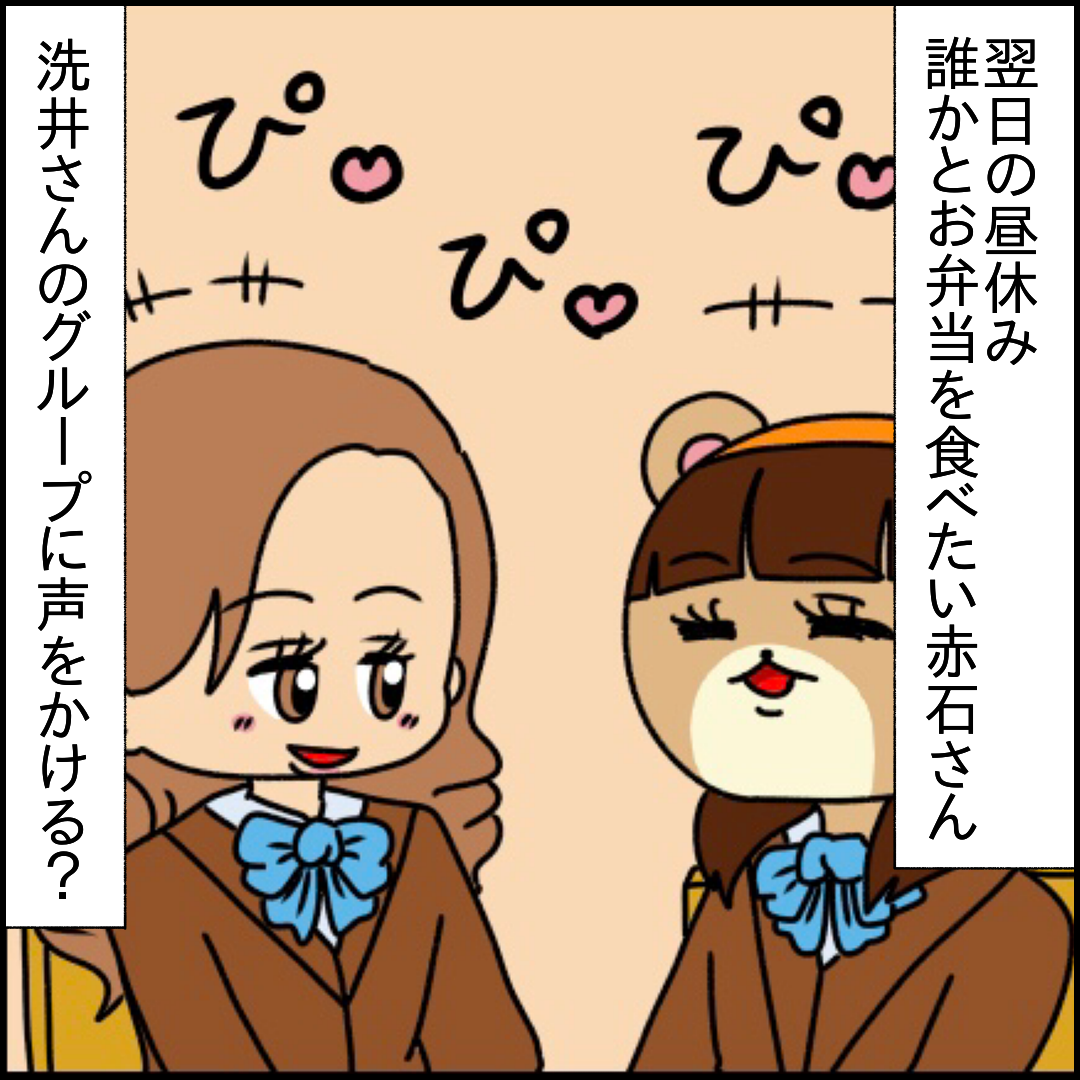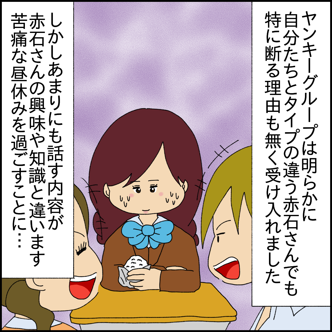 赤石さんはこの時点で基本的なコミュ力しかないので分からないけど邪魔することもなく愛想笑いをし続けるのではないでしょうか