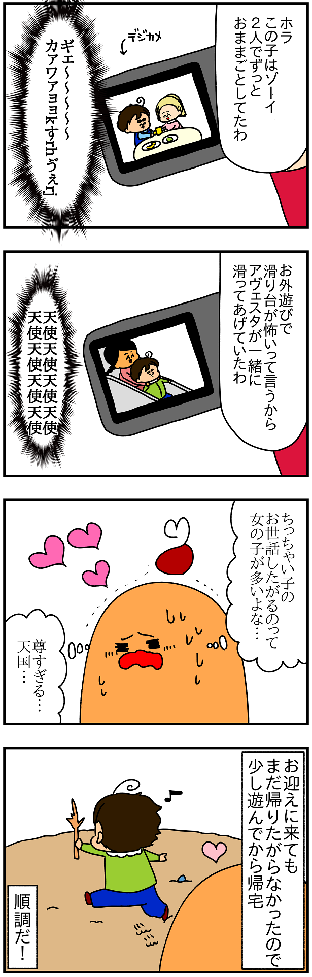 わたしは子供全般好きだから女の子・男の子どっちのほうがかわいい!っていう感覚は無いんだけど、自分よりちっちゃい子をお世話したがるちっちゃい女の子の可愛さと尊さは控えめに言って地球でイチバンだと思う。さらにそのお世話されてる子が我が子だったら宇宙でイチバンだと思う。