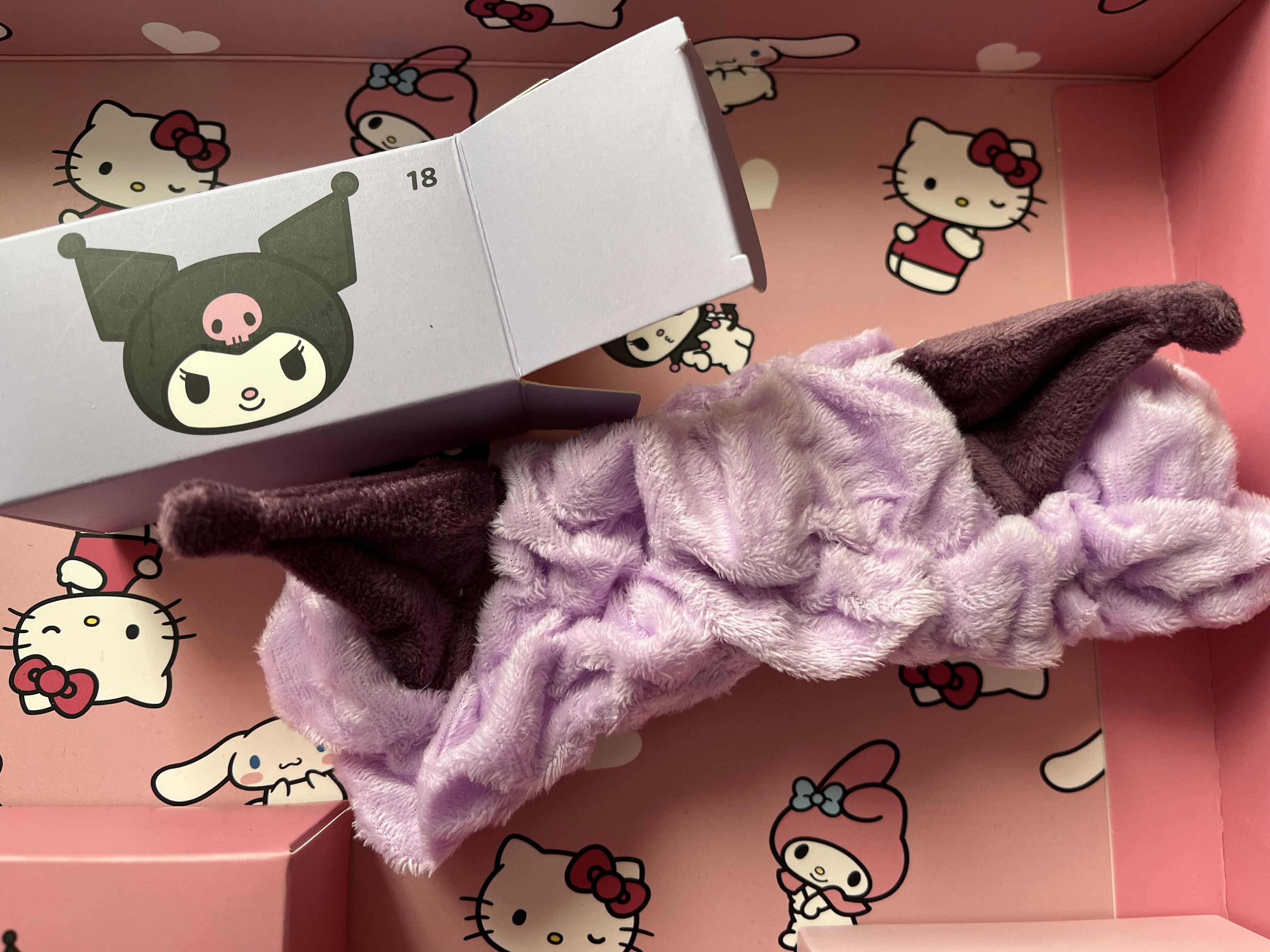 私のサンリオカレンダーは………うわぁんついに出た!!!!クロミちゃんボックスに入った私の最推しクロミちゃん!!!!しかもヘアバンド!!!洗顔やメイクの時に毎日使えるやつ!!!!大好き!!!!
