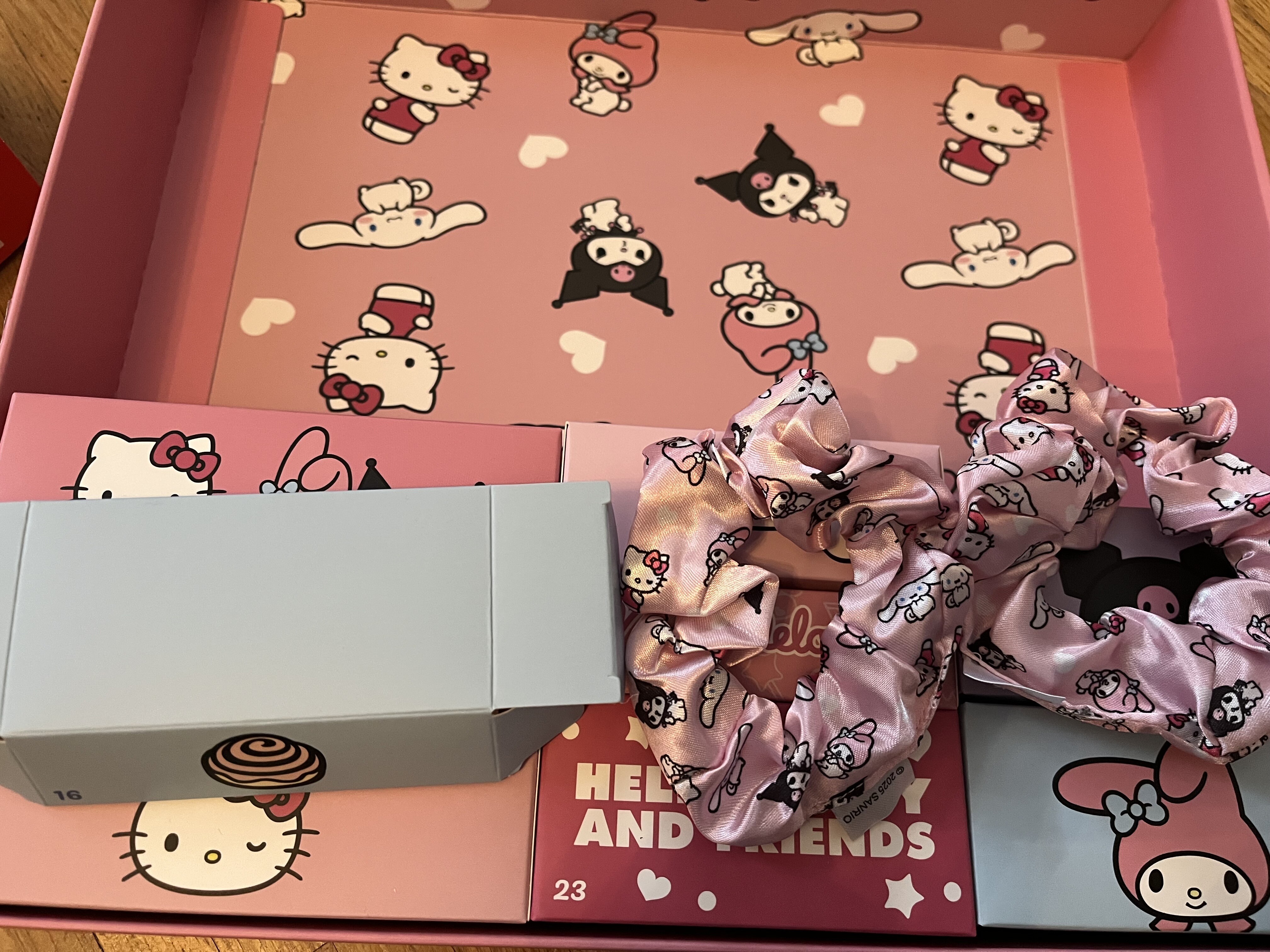 私のサンリオカレンダーは4名勢揃いのヘアゴム二つセットでした!おうちで使おう
