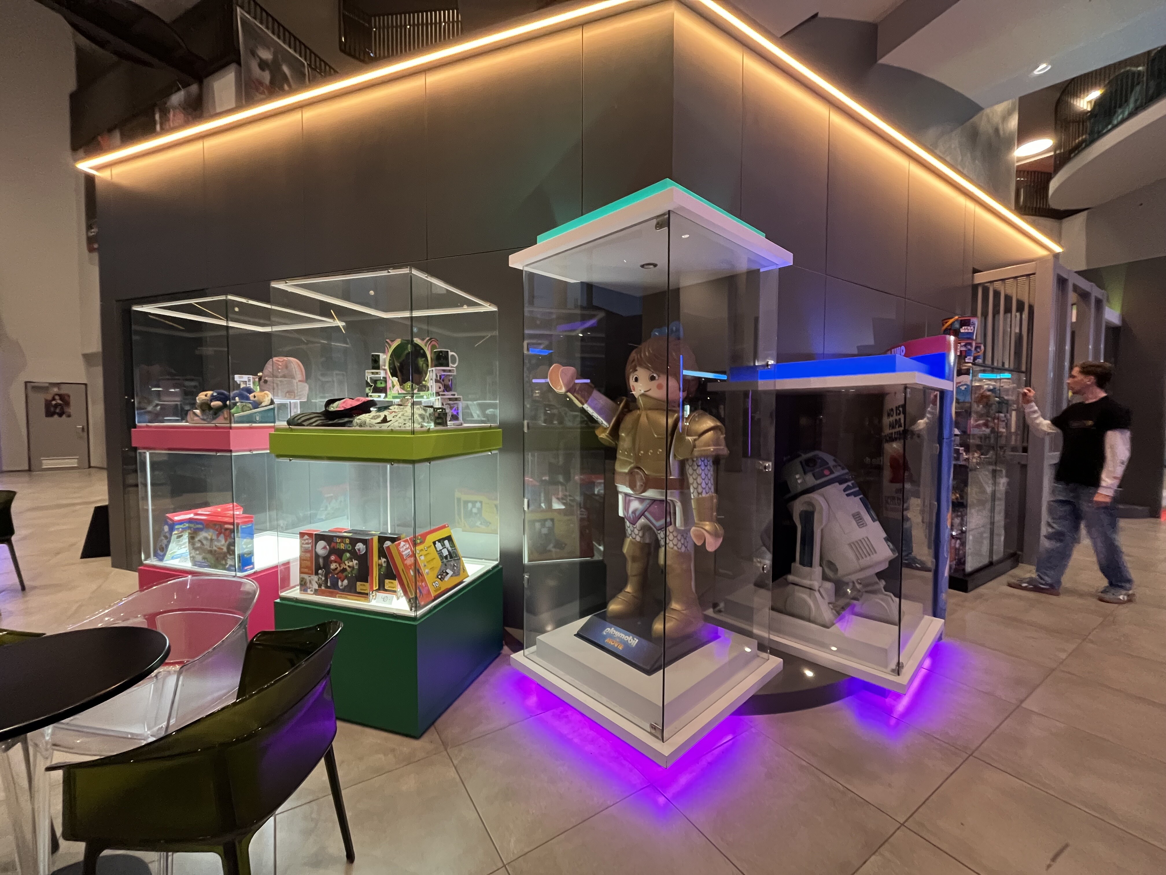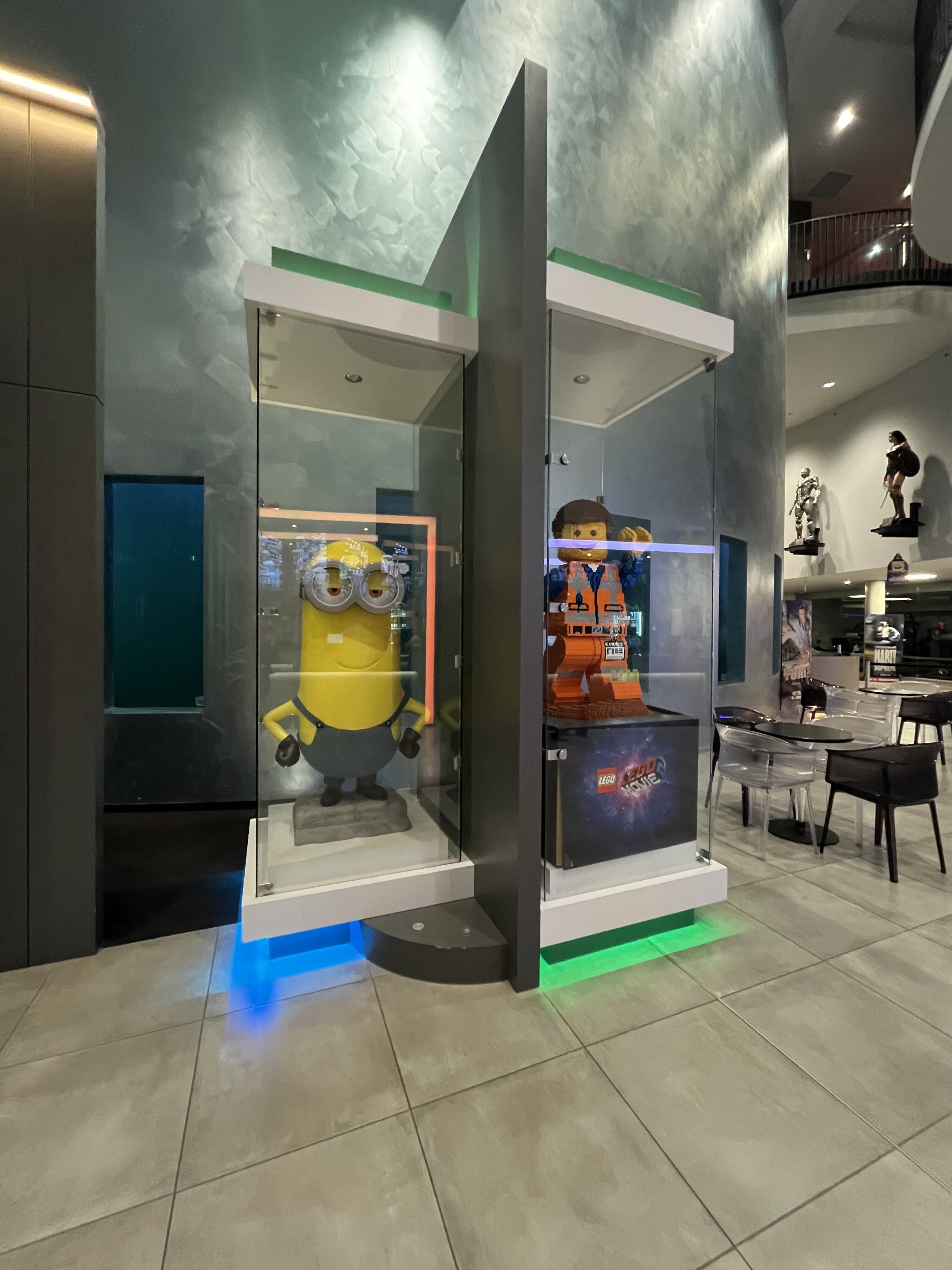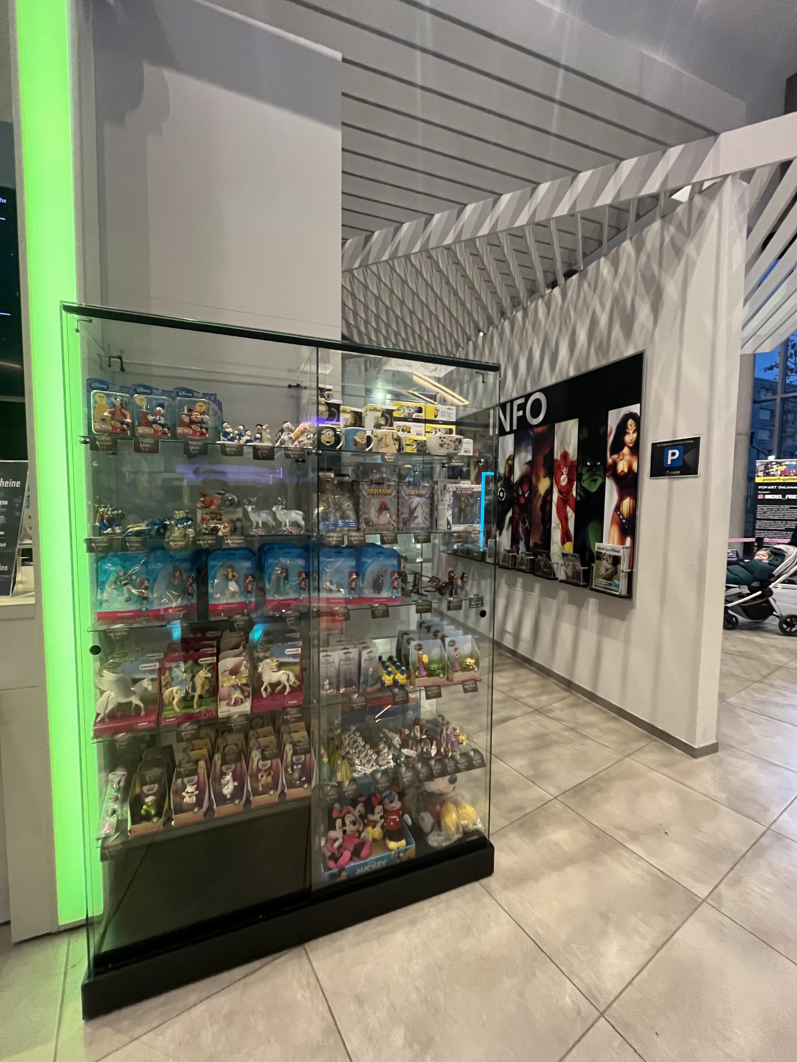 後ろの方にでかいスーパーヒーローの等身大フィギュアが見えますね
