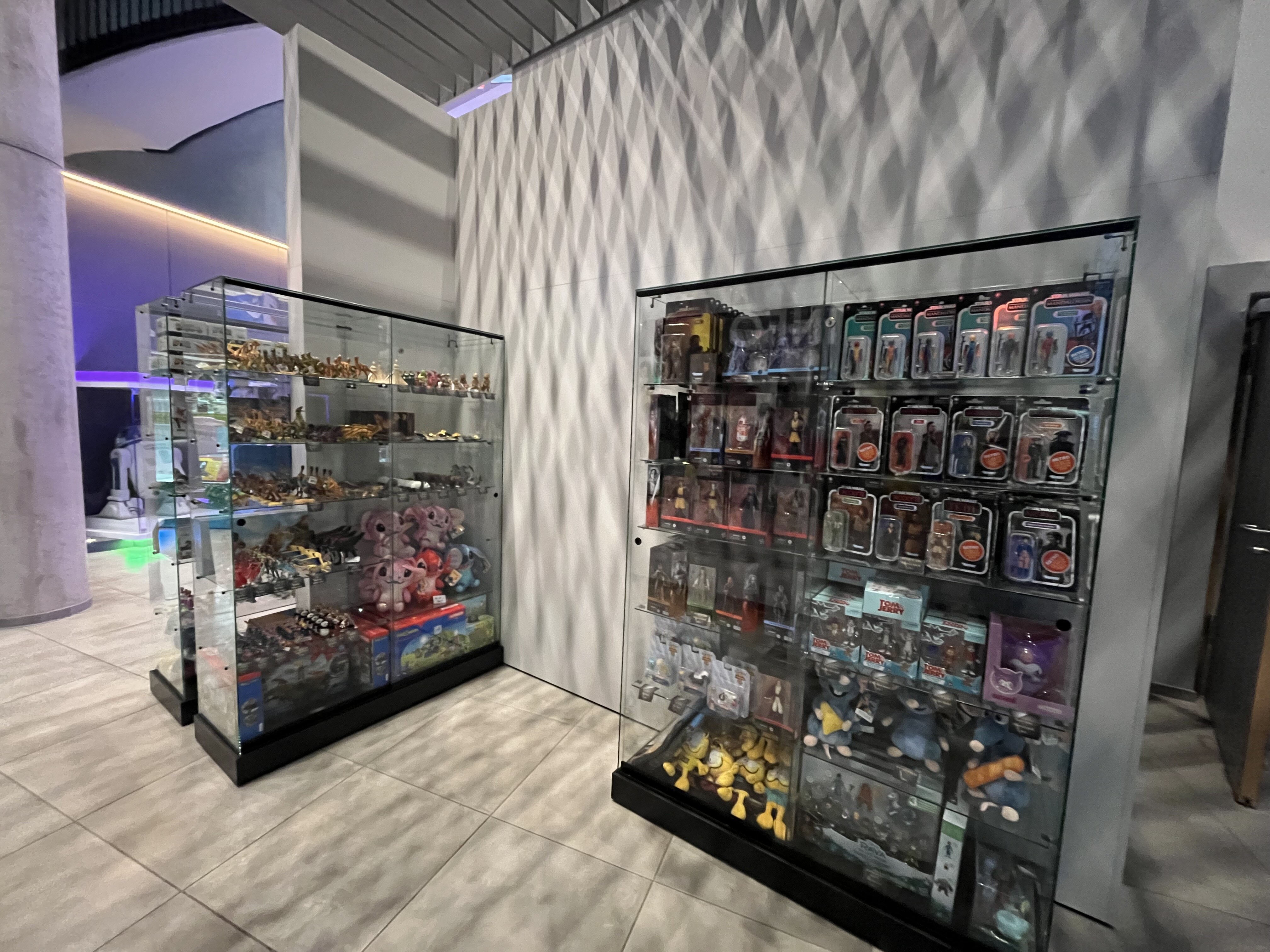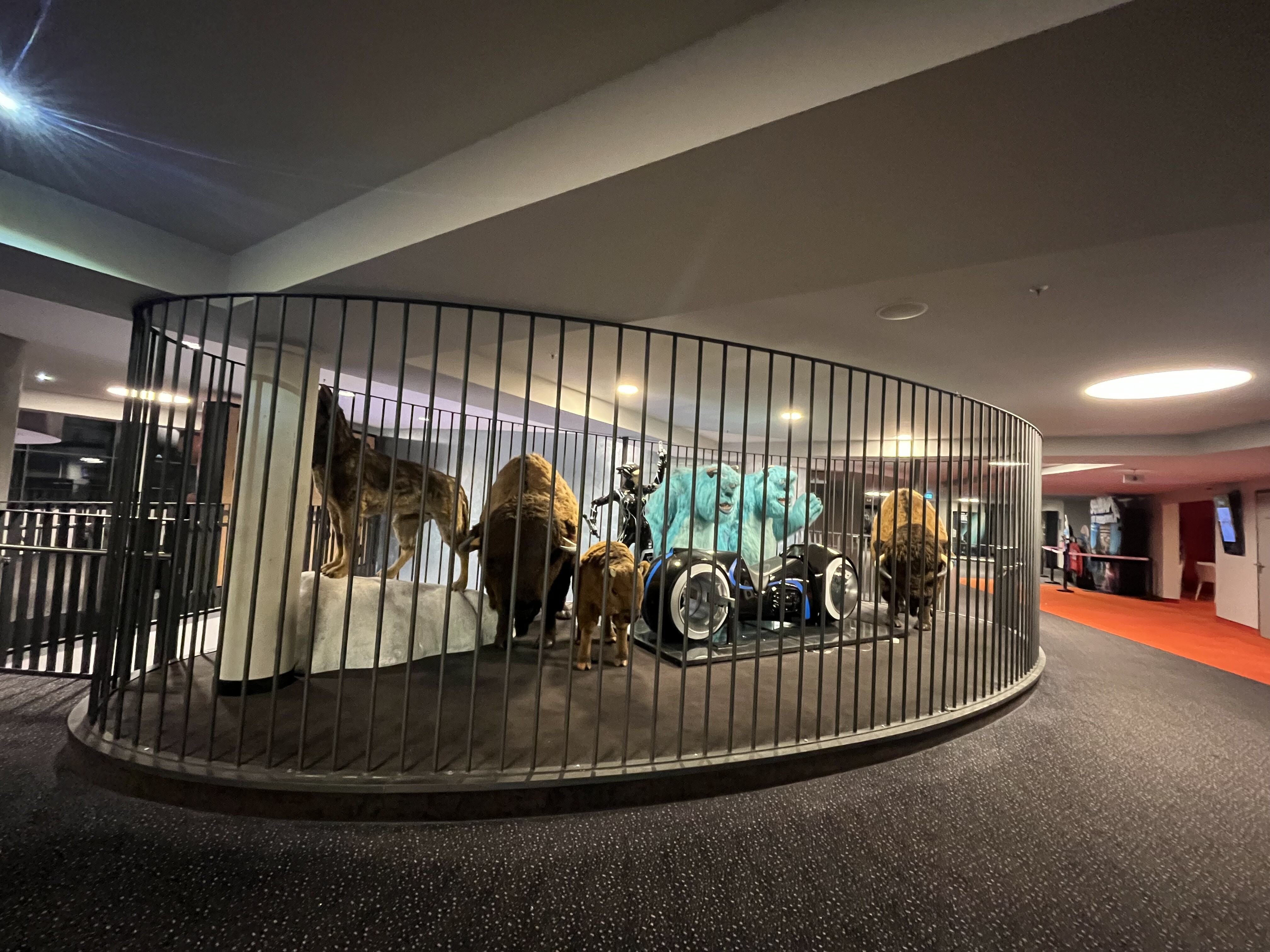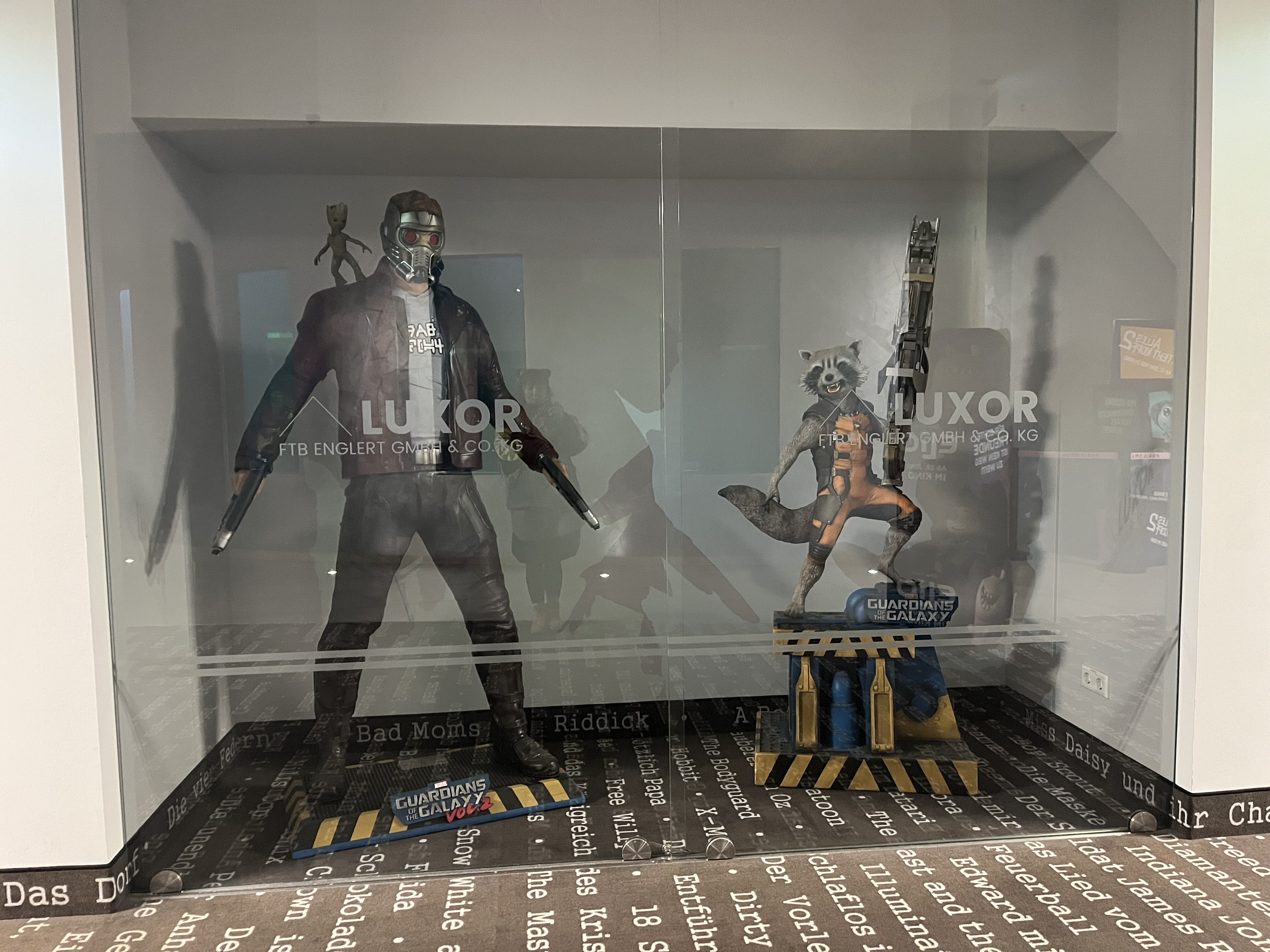後ろの方にでかいスーパーヒーローの等身大フィギュアが見えますね