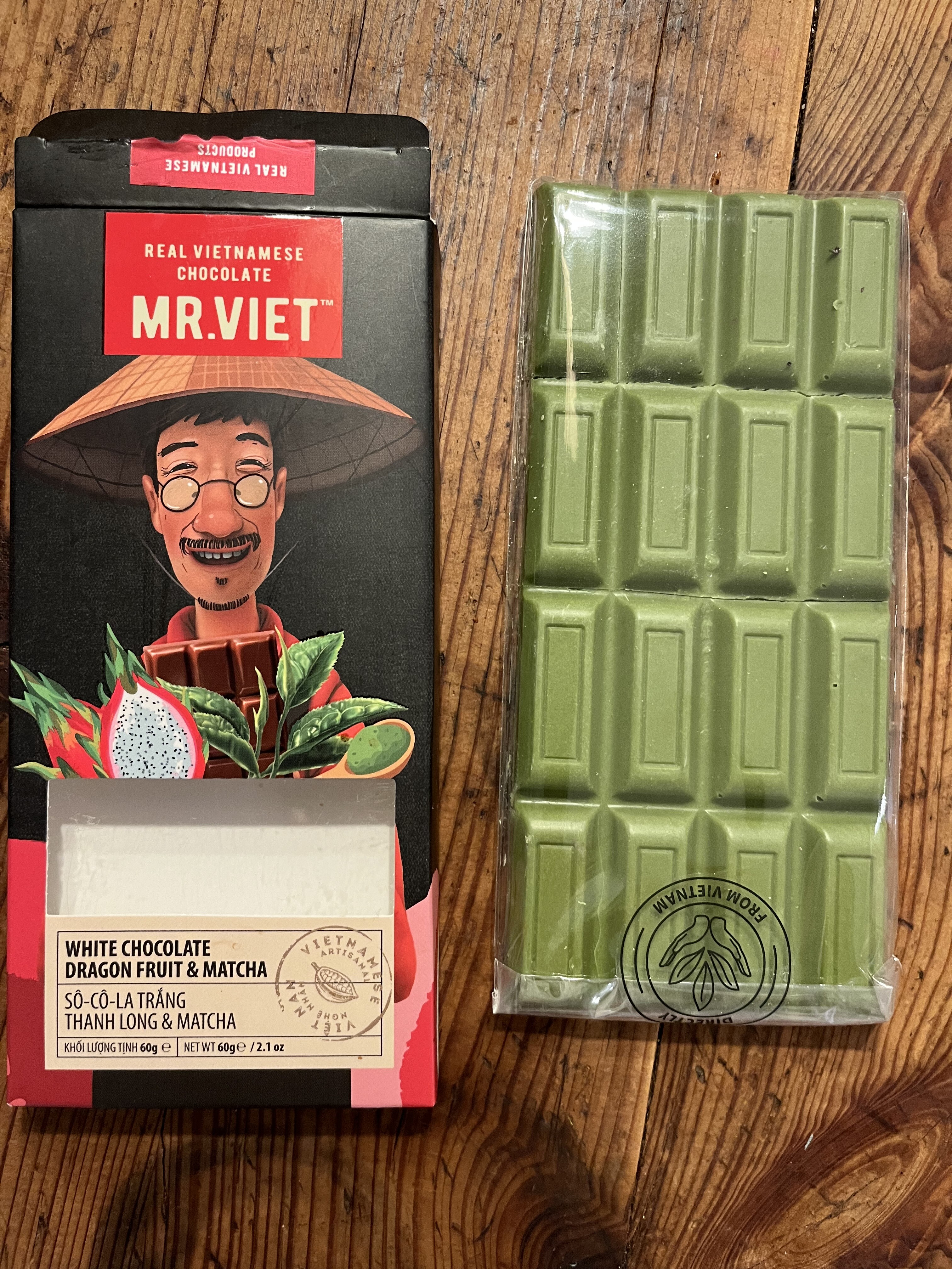 写ってないんですがこの抹茶味のチョコの反対側にドラゴンフルーツの果肉がびっしりこびりついてておいしかったです