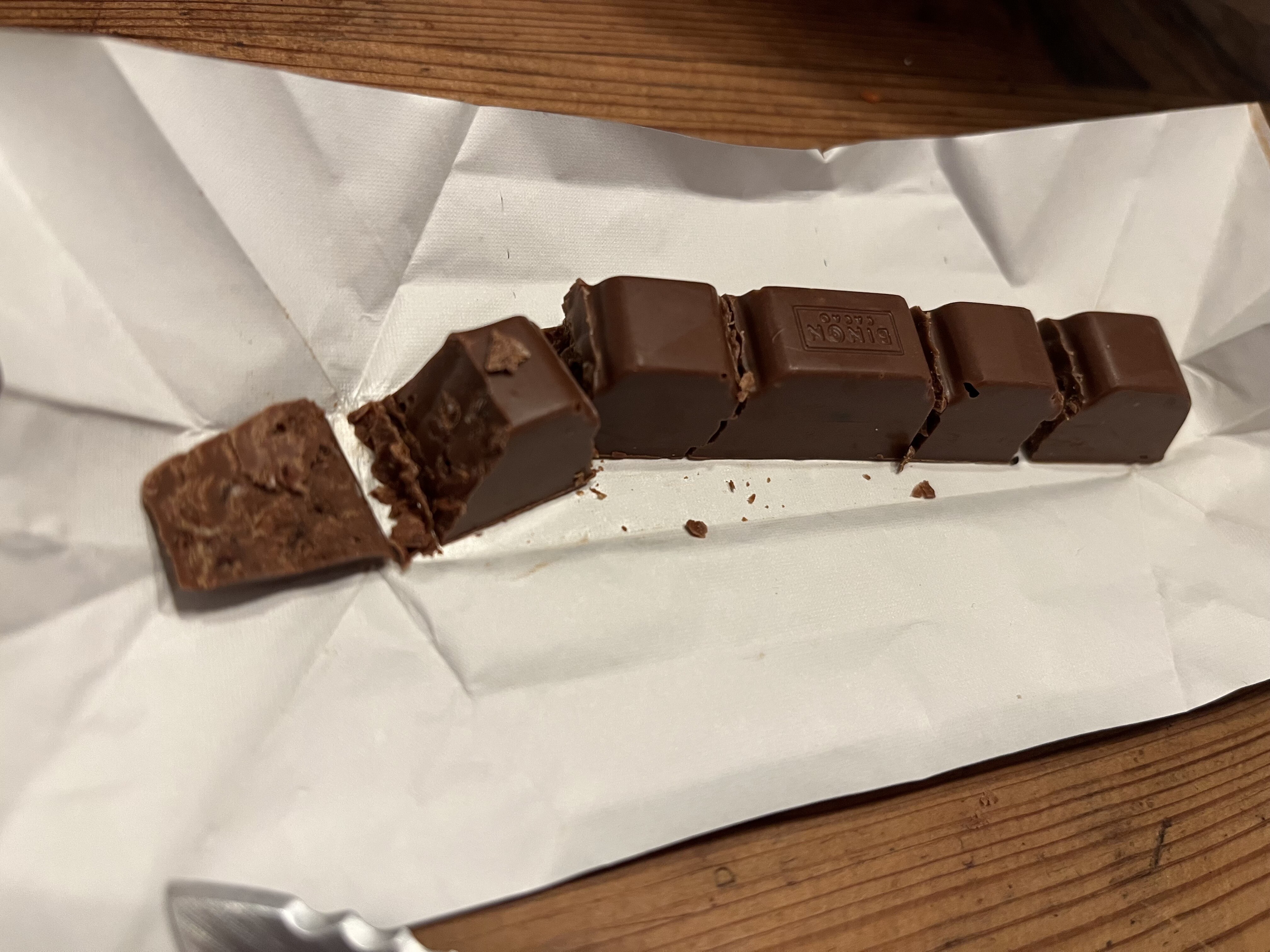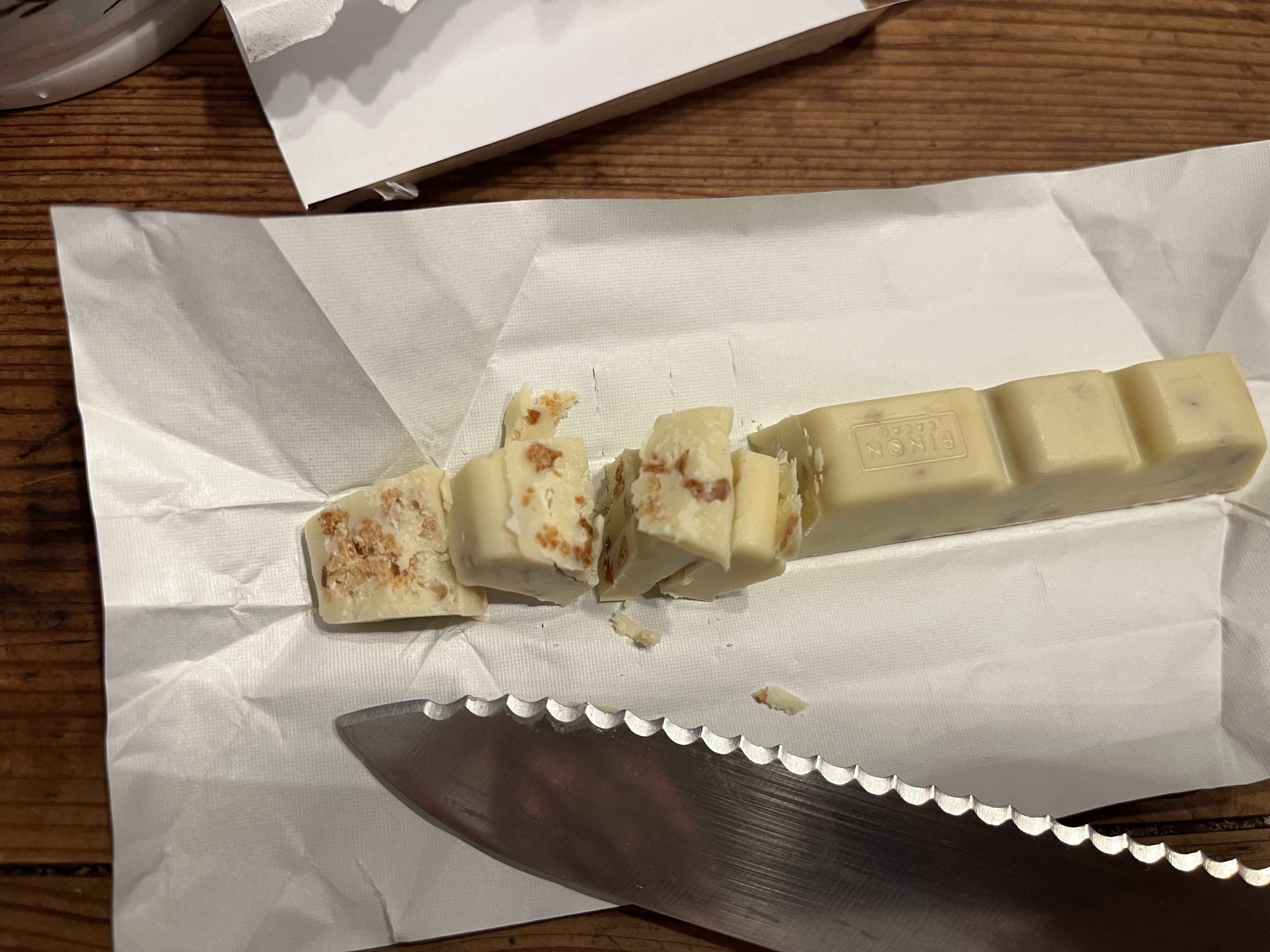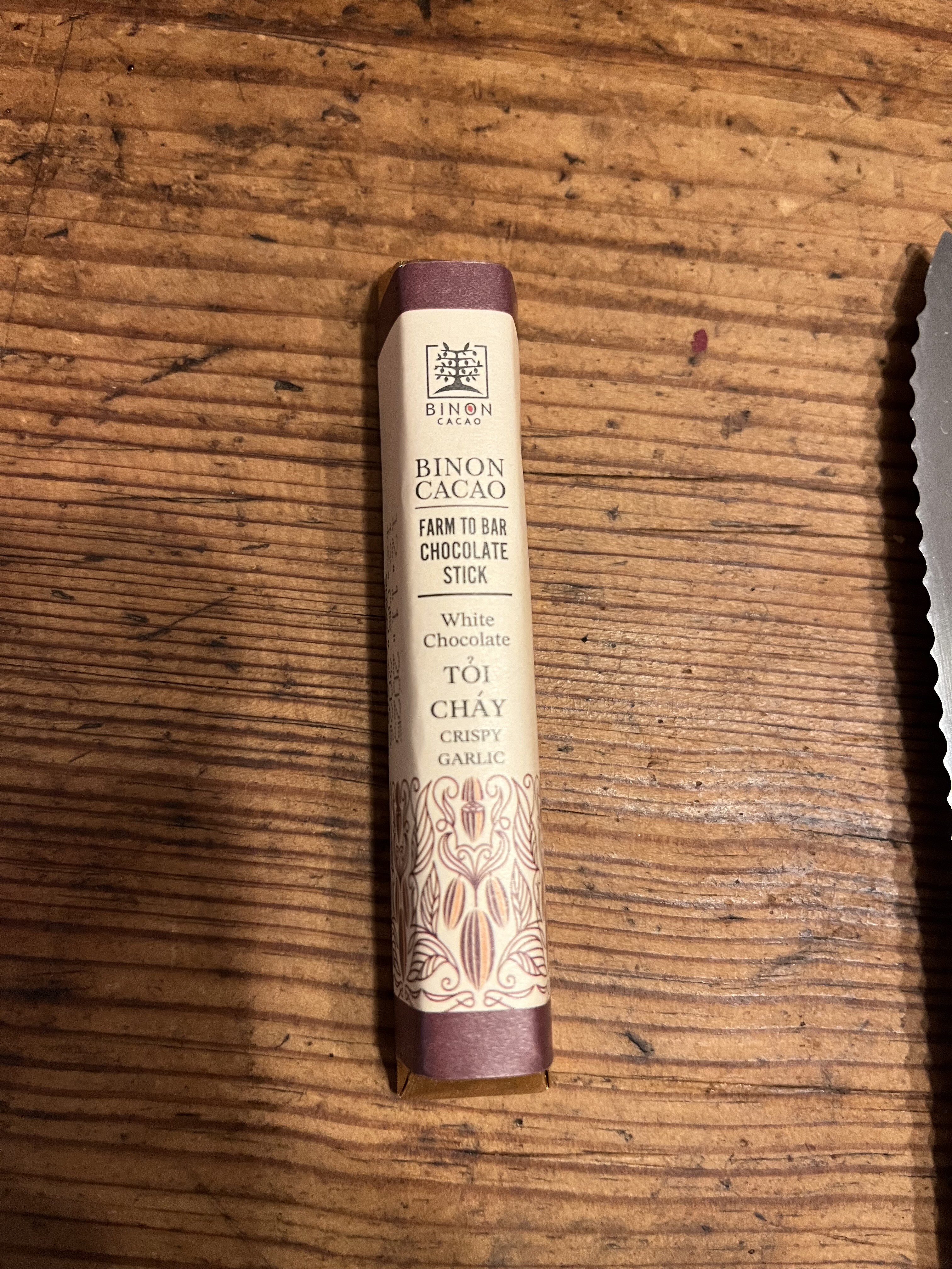 中に本当にクリスピーなガーリックチップが入っててガッツリにんにくの味と匂いがするすごいチョコだった
