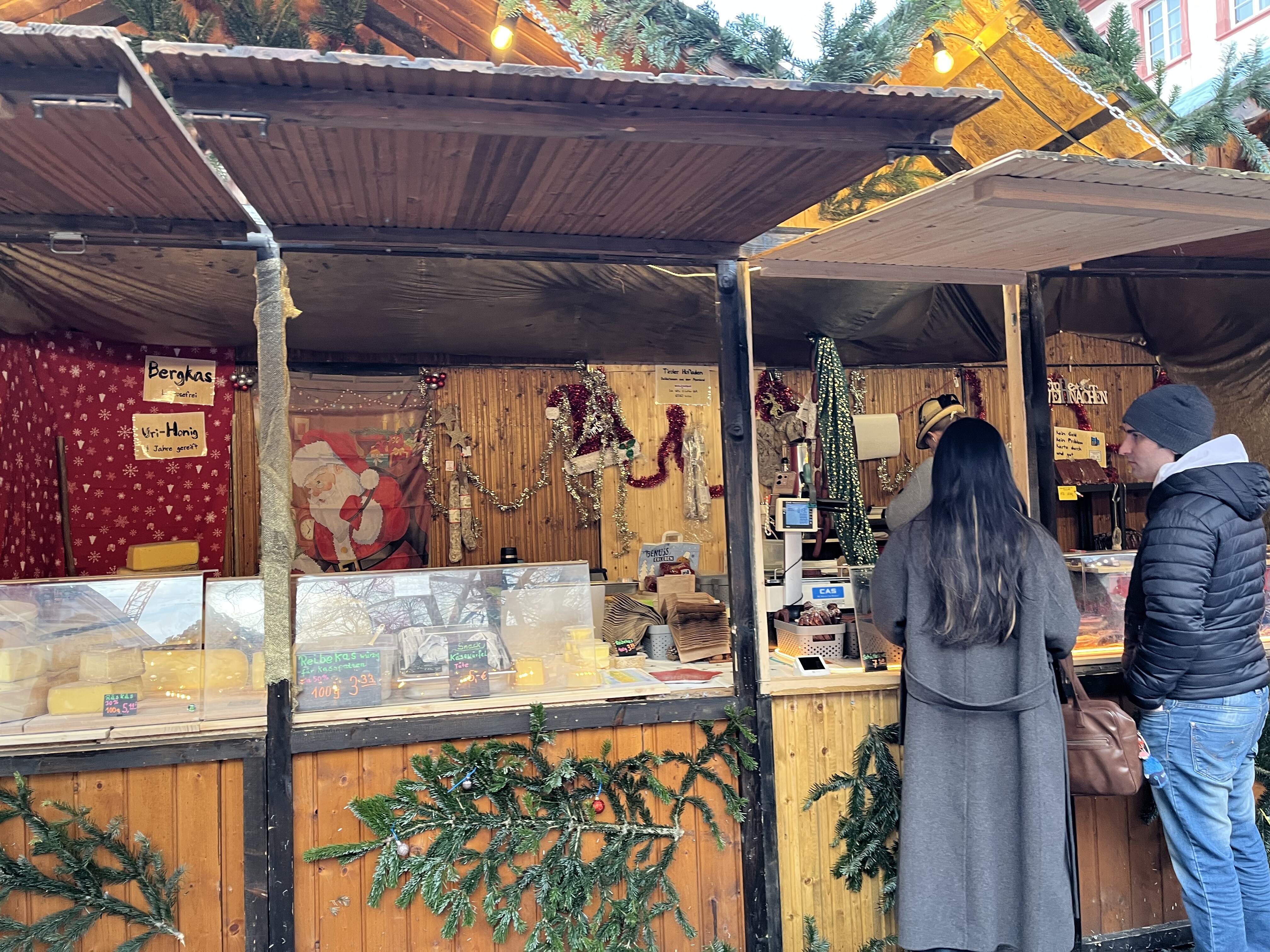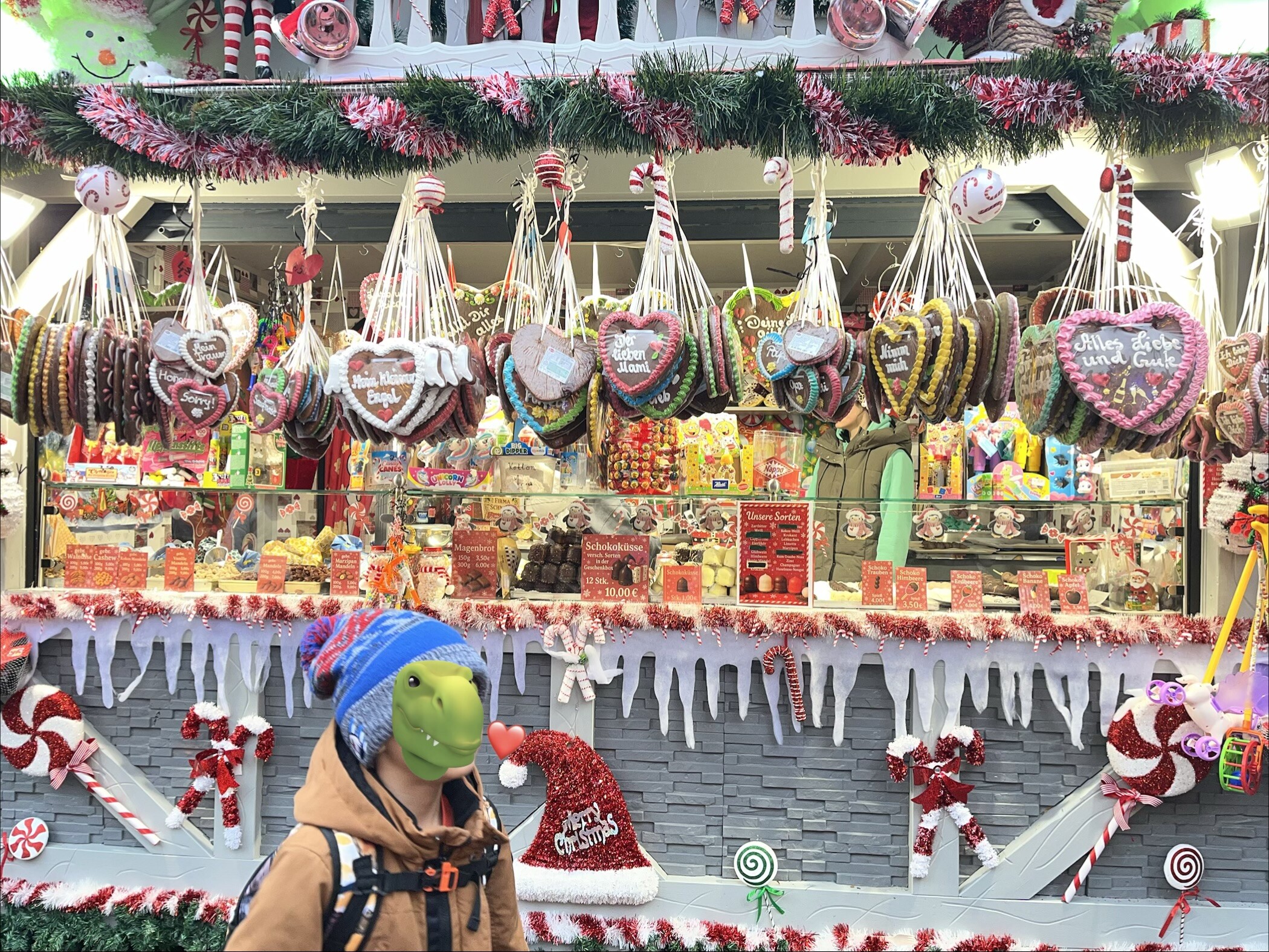 またまたお菓子屋さん。ぶら下がっているのは、お砂糖で文章が書かれてる(愛してるよ、とかありがとう、とか君のためにとか)レープクーヘンというクッキーです。お菓子屋さんは数ヶ所あるので買いそびれても他の場所で買えるよ