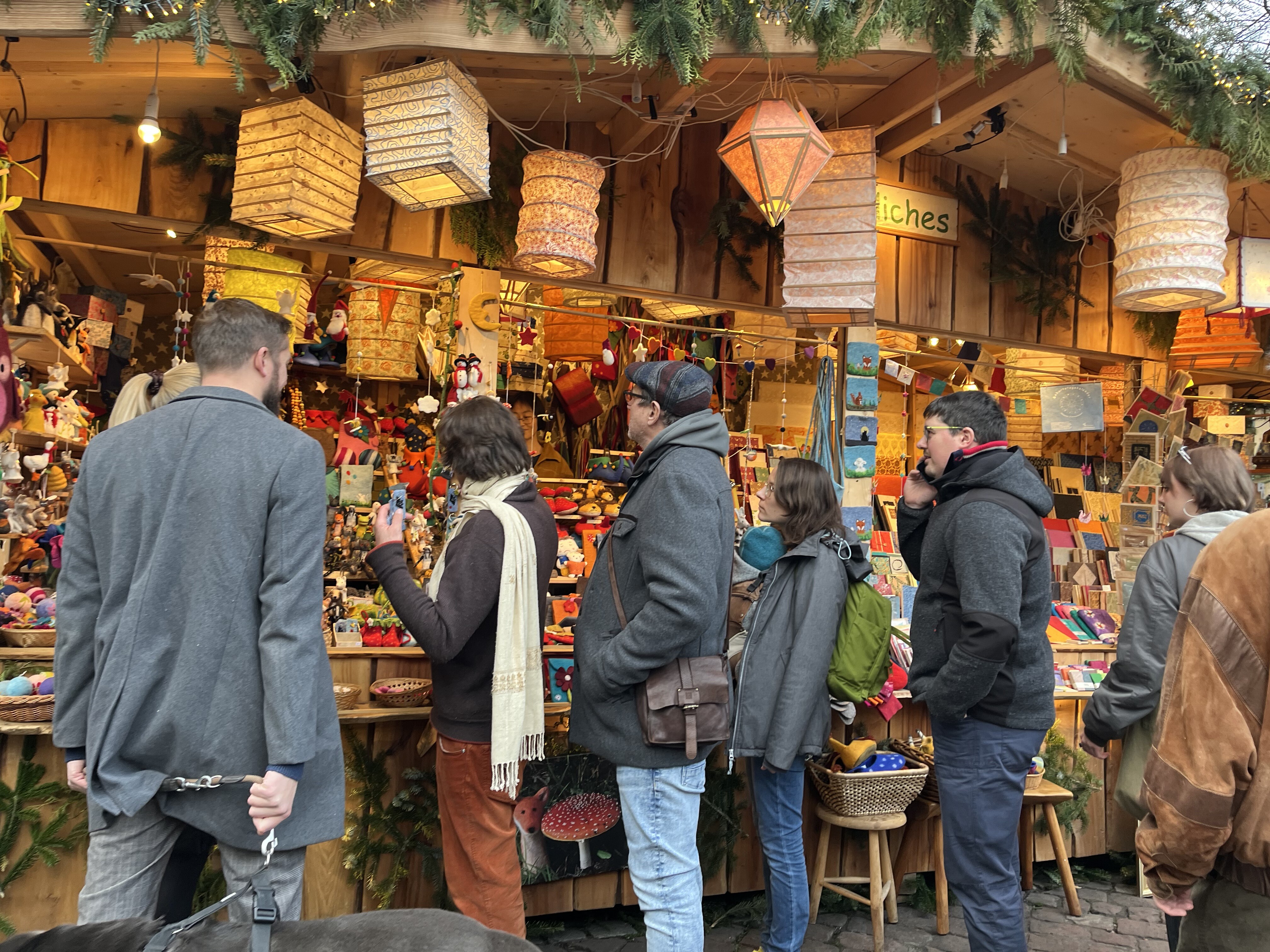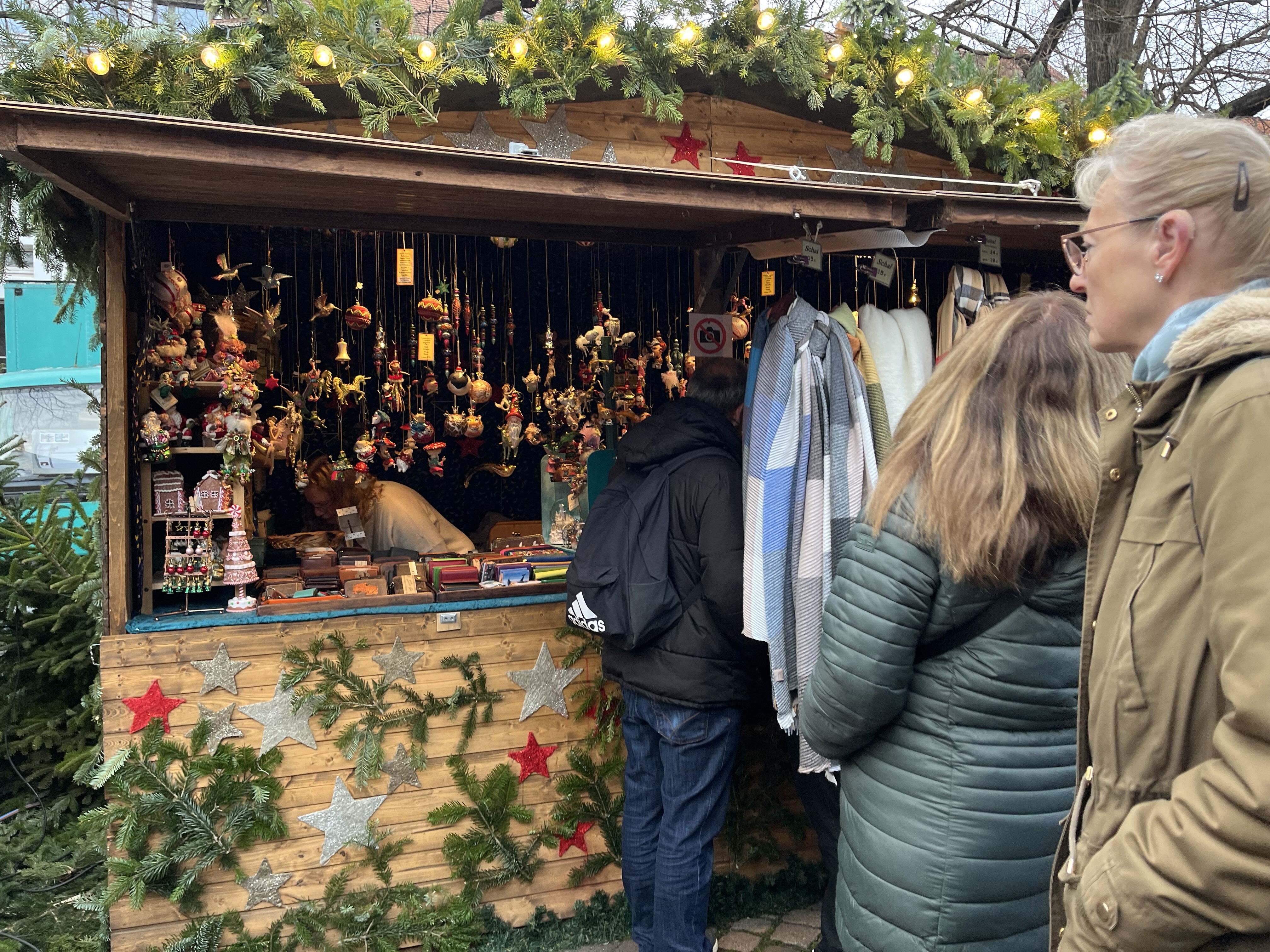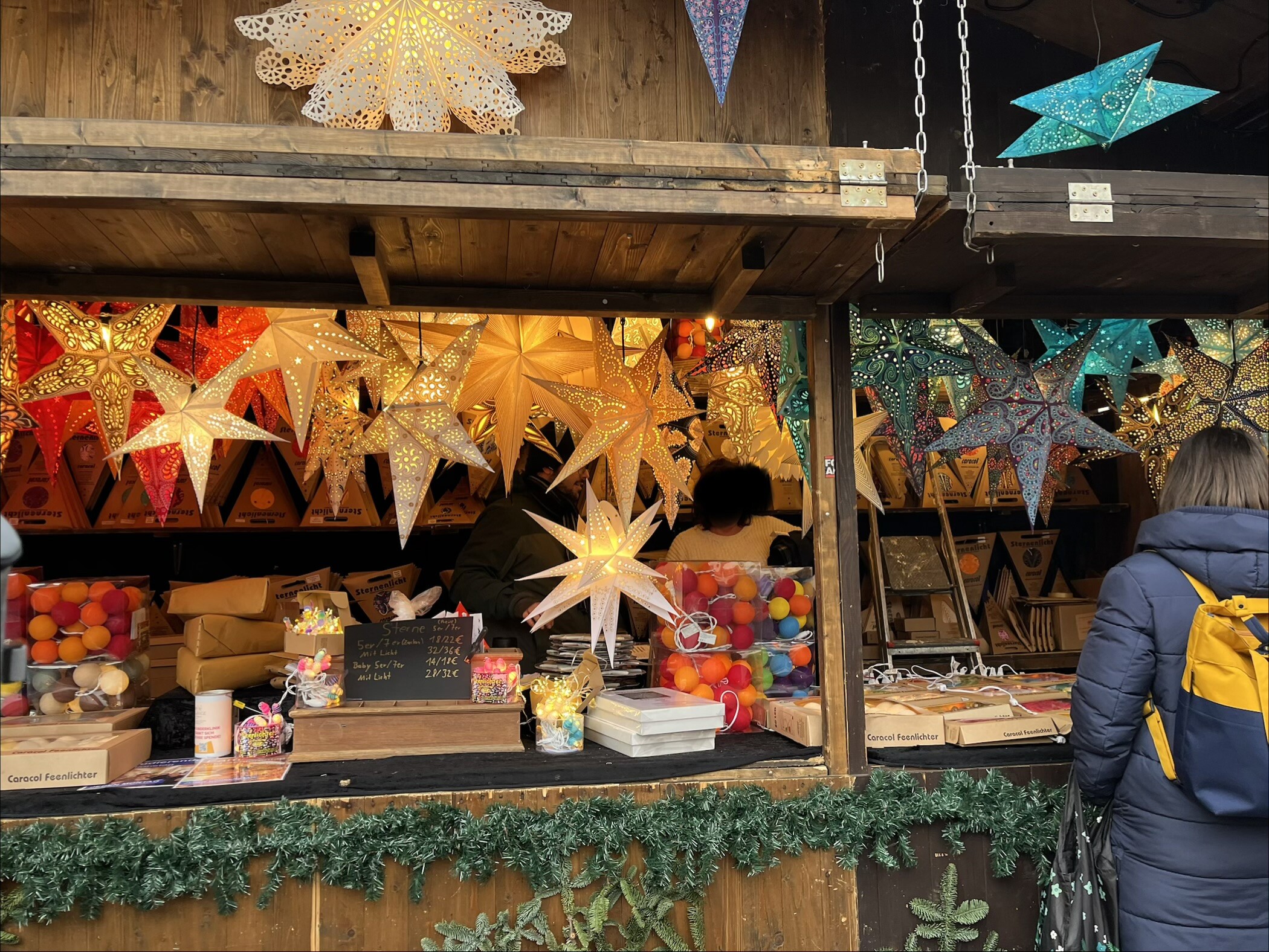 クリスマスデコレーション屋さん!クリスマスマーケットっていうのは、クリスマス準備が始まる11月後半から始まってクリスマス前に終わるので、クリスマス当日のためのアイテムがいっぱい売ってます
