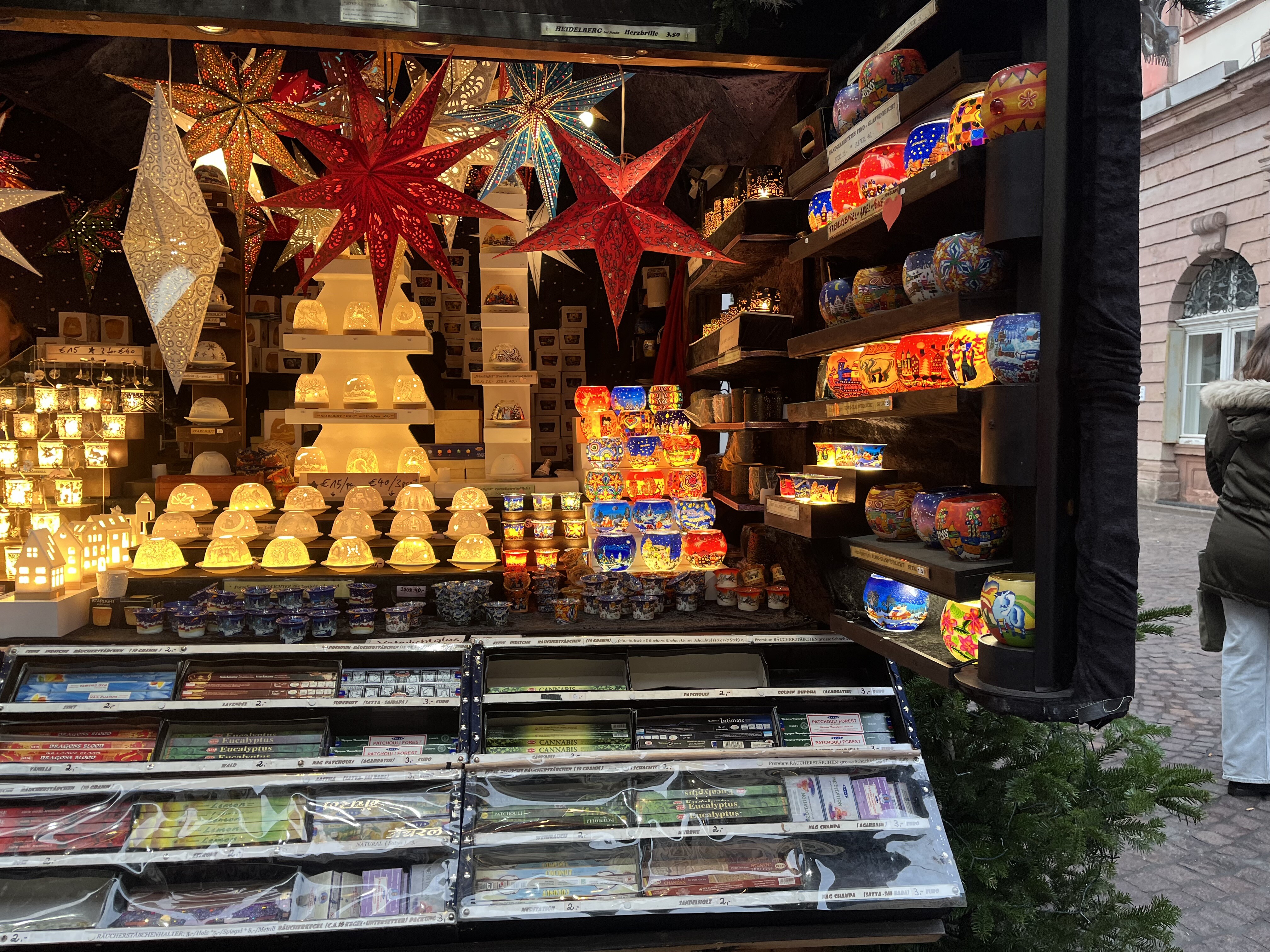 ここはろうそくやデコレーション屋さん。ドイツはクリスマスに向けてでかいろうそくを灯す文化があるのでろうそくは需要が高い