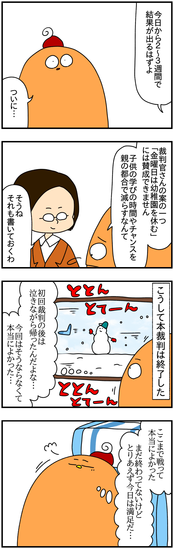 ※リアルタイムのお話ではありません。裁判はもう全行程終了し、親権割合の結果は出ています。