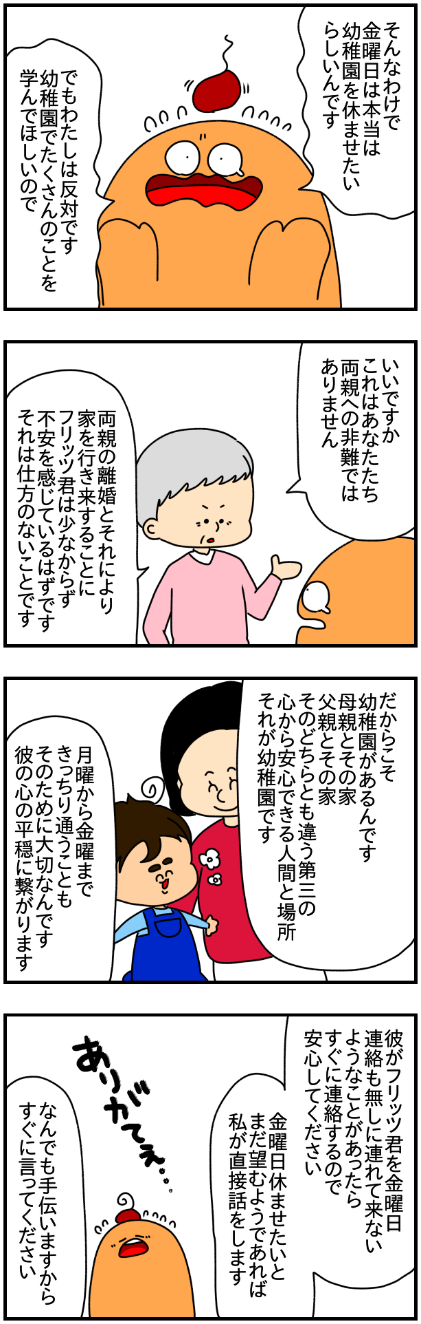 👇この記事にある通り、エックスは金曜日(5日目)ちゃんとふりぽよを幼稚園に連れて来た(わたしもこの日の朝は幼稚園前で合流して、協力してふりぽよを幼稚園に送り出した)