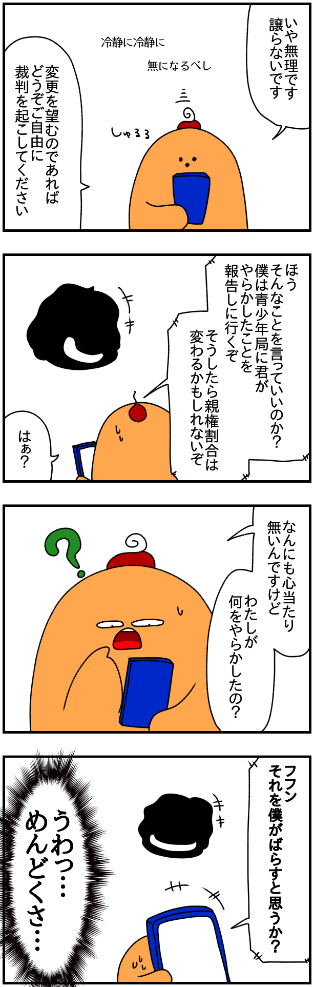 ※リアルタイムのお話ではありません。裁判はもう全行程終了し、親権割合の結果は出ています。