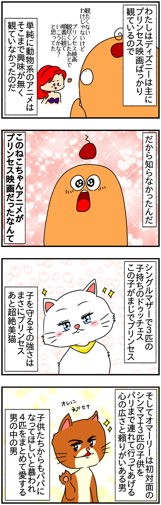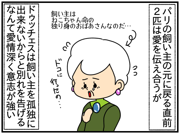 知らないひとのために軽く解説すると、このシンママ+3匹の子猫ちゃんたちはパリのお金持ちのおばあちゃんの飼いねこちゃんたちなのだ。