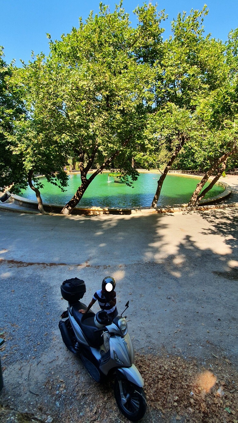 鬼でかい噴水?見つけた。しかも人が泳いでる。シュテフも泳いだ。