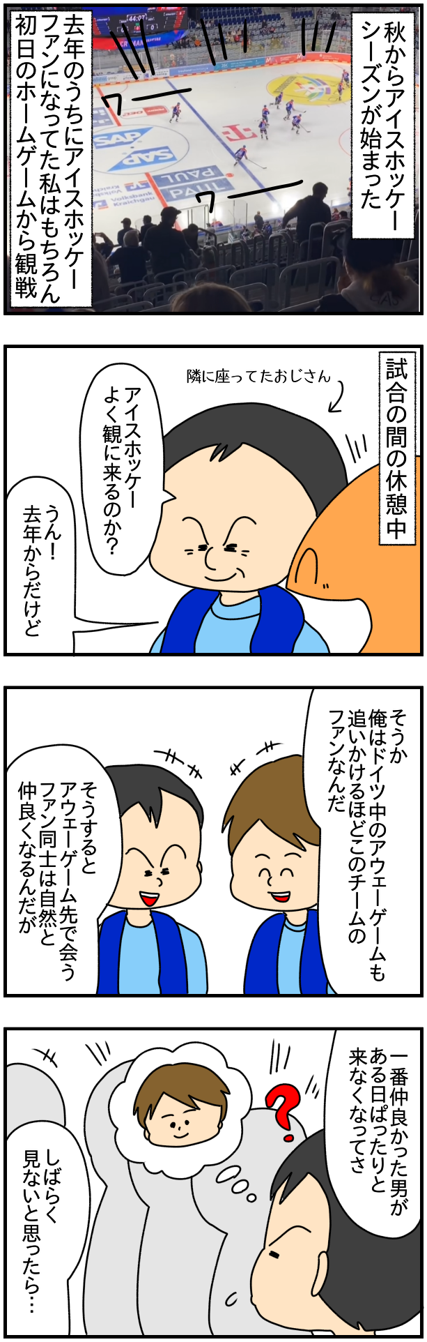 2022年11月25日 2072.アイスホッケースタジアムで聞いた話 おはようなぎ🏑なぜそんなめちゃくちゃ興味深い話を…ちなこの日の試合は負けたけどこのおじさんの話の方が気になって仕方なかった👇前もこーゆーことあったな👇大人気!きよかちゃんシリーズの過去作品はここに全部まとめてあるよ💕👇たくさんのひとがブログを読んでくれることになったきっかけ!国際離婚・親権裁判の経緯はここにまとめてあるよ!👇チコちゃんシリーズ書籍化!!発売開始しました💖💖欲しがるあの子を止められない とんでもないクレクレちゃんに絡まれた結果、 人生を深く考えた話ぱん田ぱん太KADOKAWA2023-07-05👇ぱんちゃんブログ記事の更新通知を受け取りたいひとはこの中のどれかから💝👇SNS色々やってます!ぜひぜひフォローしてね~💝👇人気ブログランキングの応援してくれたら嬉しいなぁ💕(クリックは一日一回有効らしいです!)絵日記ランキング👇コメント欄は承認制です!詳しくはこちら カテゴリなしの他の記事 タグ :#カルチャーショック < 前の記事次の記事 >
