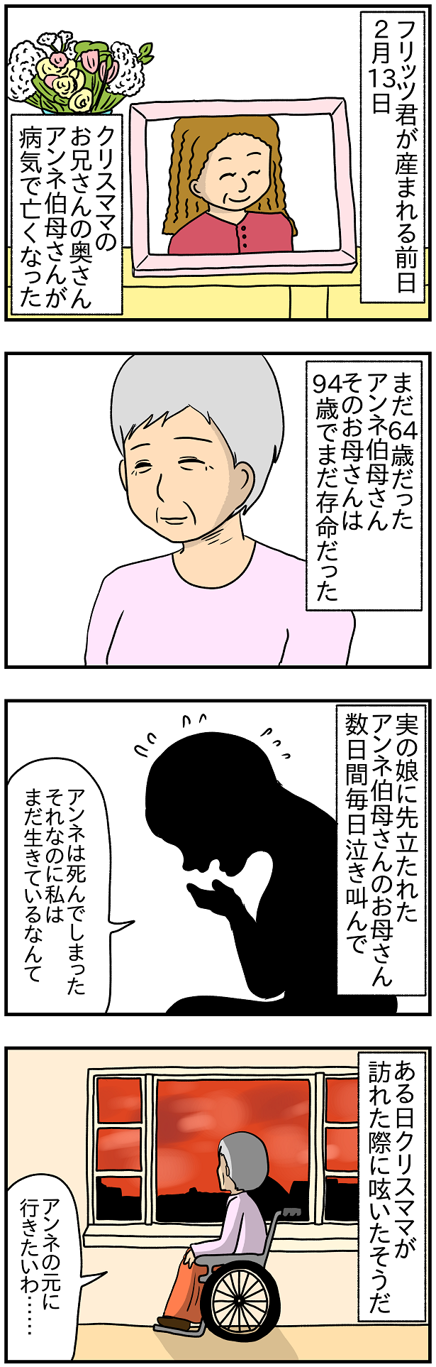 最初、アンネ伯母さんのお母さんがあまりの悲しみで亡くなったと聞いた時、そんなことが現実にあるのかと信じられなかったけど、そんなことがありえるほど親が子を失うのは凄まじい悲しみなんだなって実感しました。