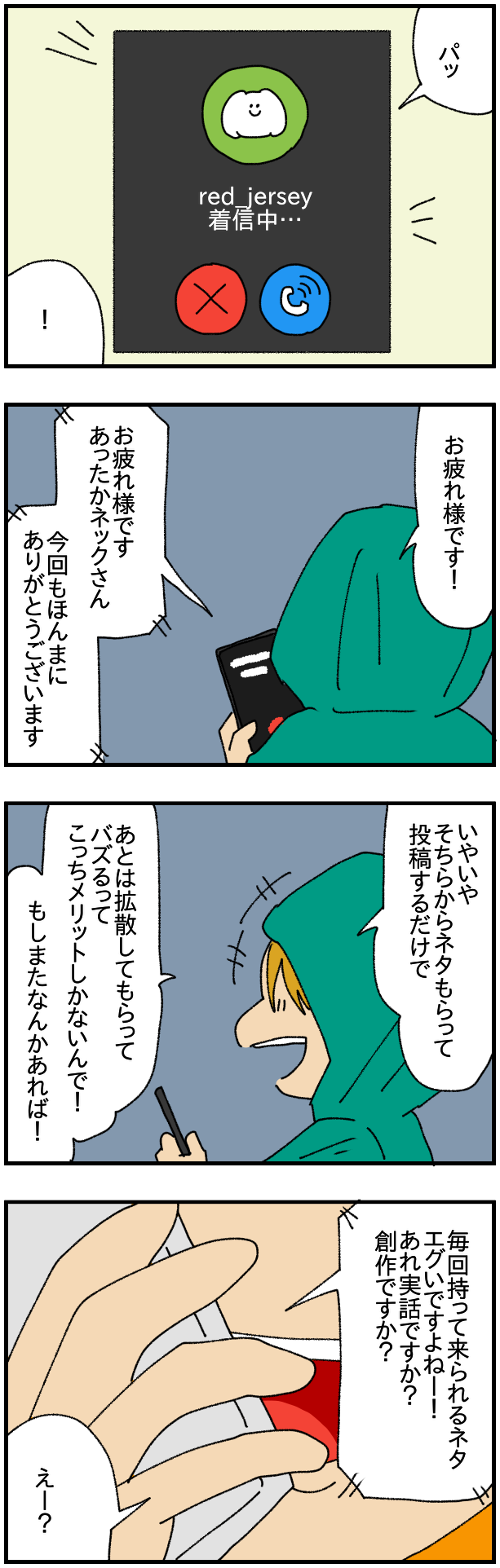 👇次回のお話。あったかネックさんとやらに結婚式のネタや不倫ネタを提供していたのは…この子でした。